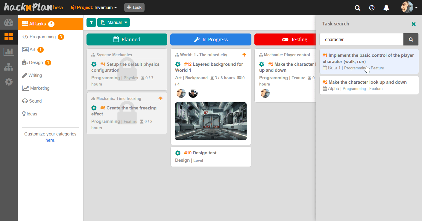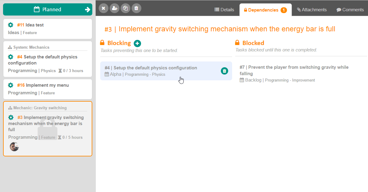 A new update of your sexy game project management tool is here! This time, we added two interesting new features: a search engine that will ease your life when you need to locate a task, and also task dependencies, a way of preventing changing the status of a task until the tasks it depends on are finished. Our roadmap to the official release is getting smaller and smaller! We also fixed a good amount of bugs and added a few improvements will be very useful to you, I hope.