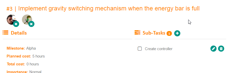 - Task editor improvements: We made some improvements to the task editor panel, mainly to the task details page. We relocated the assigned users from a central column to a horizontal list below the task title, making then some more space for the sub-tasks. The creator of the task went to the bottom of the page. We also aligned all the creation buttons to the left, which makes them more intuitive.