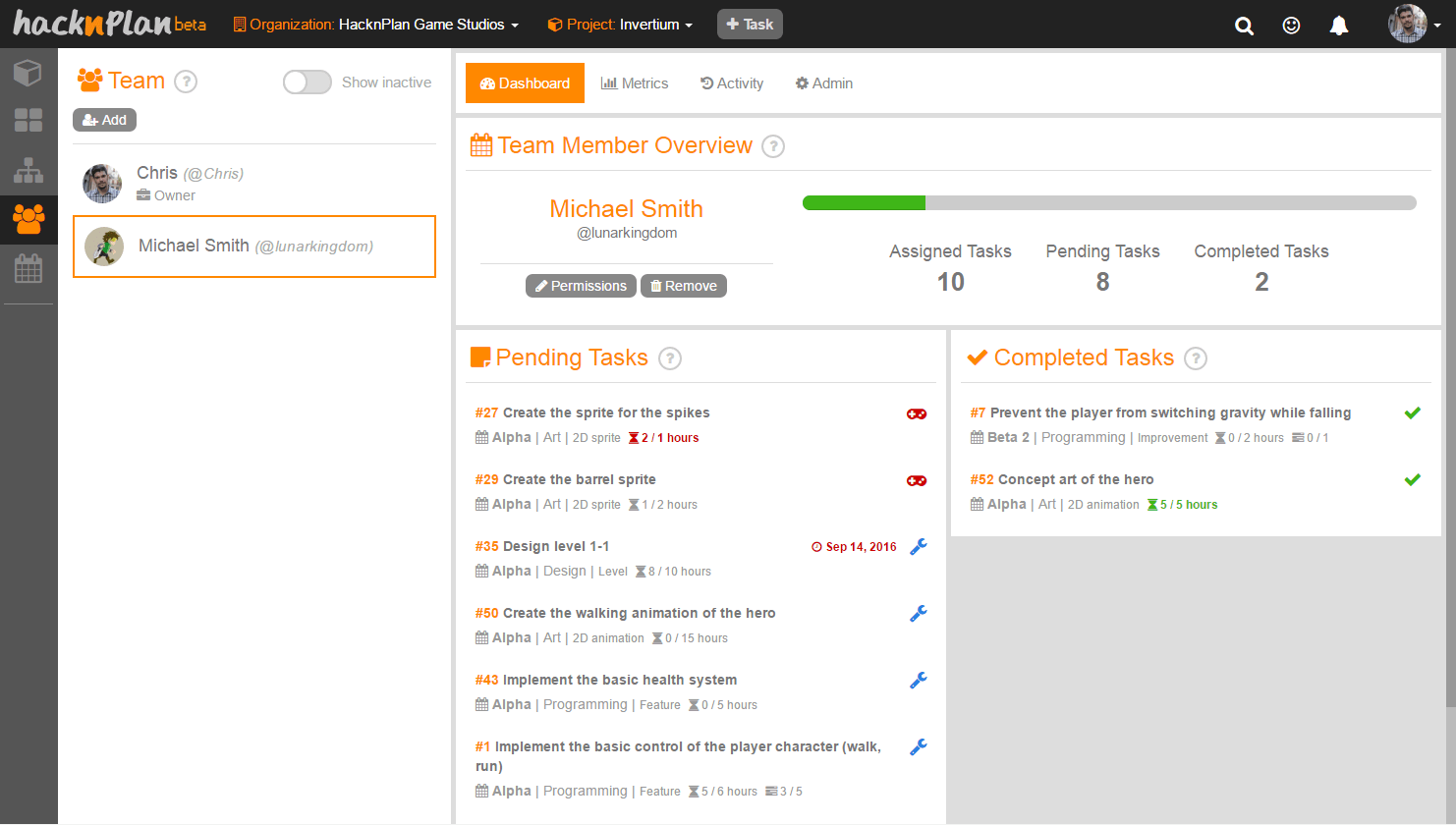 It’s been a while since the last entry in our development diary was published. As you probably know, we have been working intensively on the pre-order of HacknPlan Studio plan (we have renamed it, as Professional seemed to cause confusion) and the early access program that comes with it. This is the first one where we showcase the new features both in the Personal and Studio plans, and that’s how it will be from now on. If you have been following this project long enough, you already know that we work in 2/3 weeks iterations and we always detail here what the new features are after the iteration is over. Now that we have the early access program for the Studio plan going on, we will be working in parallel in both sets of features and will present the changes here the same way, clearly specifying which one belongs to each plan.