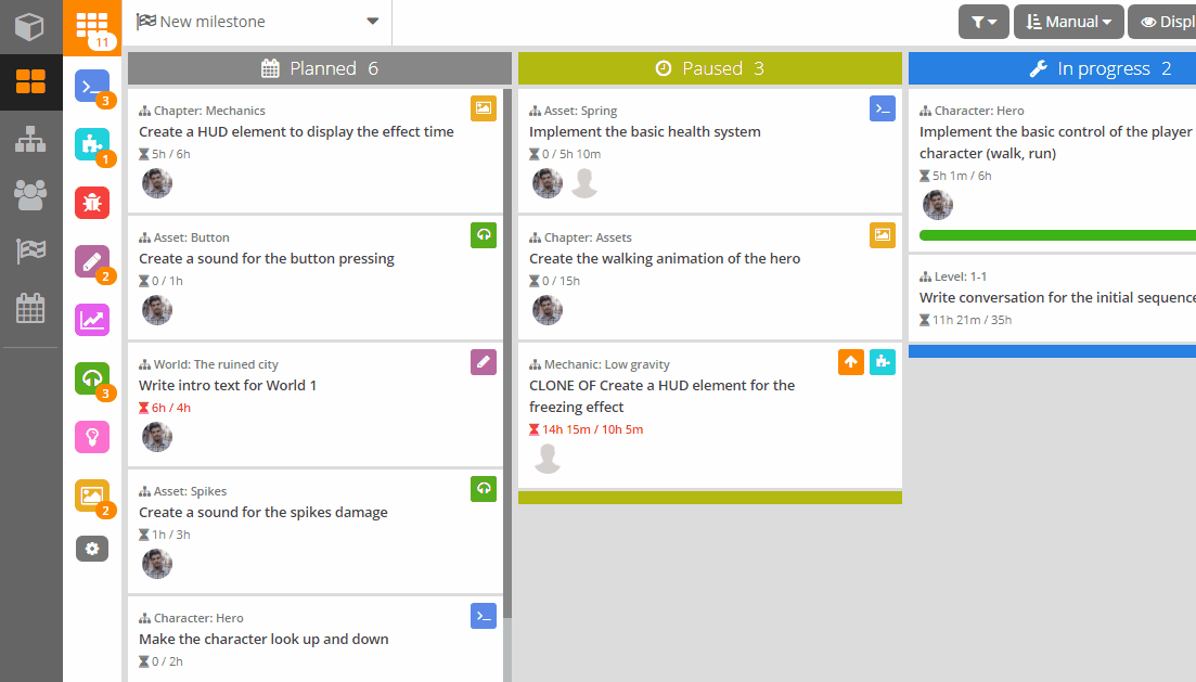 Many of you requested a way to discuss the design of your game, so we added a comments section to the design element panel. Your designers and the rest of the team can talk and keep the conversation linked to the specific mechanic, character or whatever else you defined as part of your design documentation, which gives an extra source of information and context to the element. Like the task comments, they support Markdown and user, attachment and task references.
