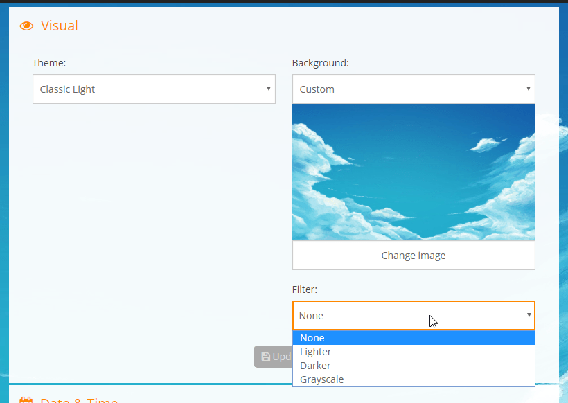 Everyone likes to work with tools that are visually pleasing, that’s why we keep adding this small visual customization options. In combination with the theme selection (light or dark), you can now upload a picture as a background of the application.