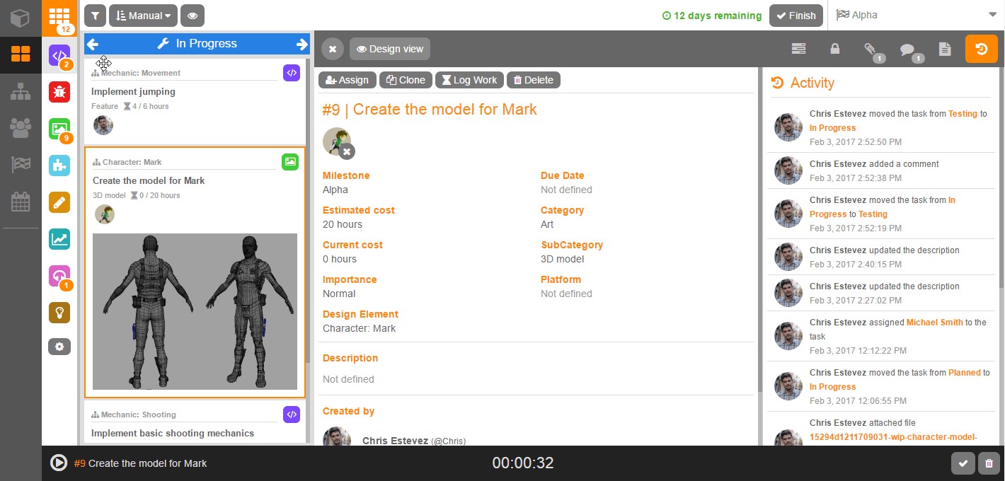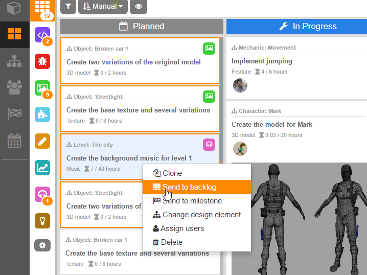It’s quite common that, after an iteration of your game, there are tasks in the milestone that were not finished. Up to this moment, you had to go one by one and send them to another milestone or the backlog, but that tedious task is no longer necessary. When finishing a milestone, a dialog will be displayed asking you for an action to take regarding the pending tasks: you’ll be able to send them to the backlog or a specific milestone. You can also keep them in the milestone if you like.