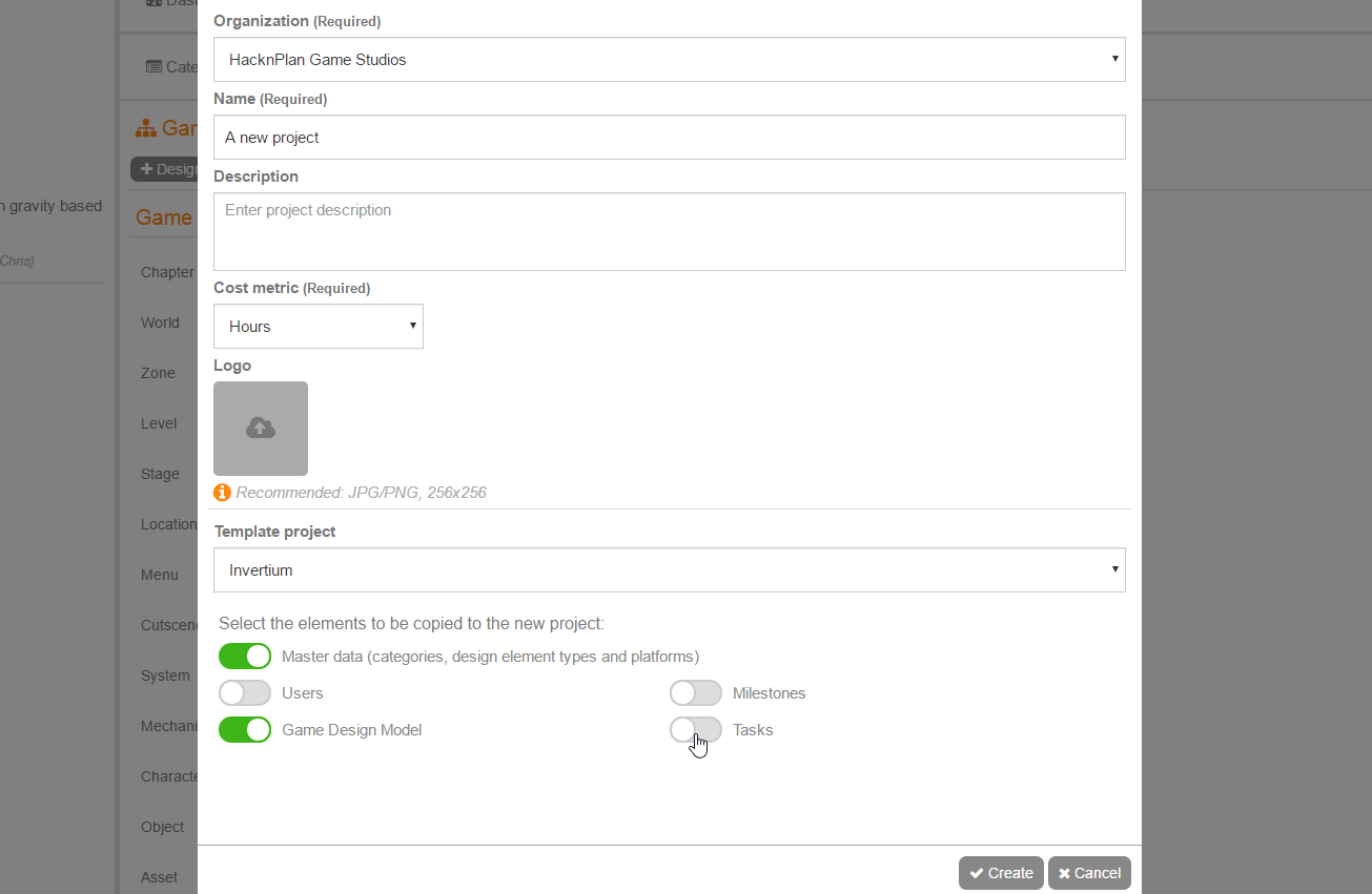 Studio users can now use projects in their organization as templates for new ones. Which information is copied to the new project? You can configure it from the project creation dialog, going from the most basic configuration (master data like categories or design element types) to an almost full clone including the GDM, users, tasks and milestones. With this feature, teams that work with many small projects can create a base one with a predefined skeleton and use it as the template for the rest, saving a lot of time to producers.