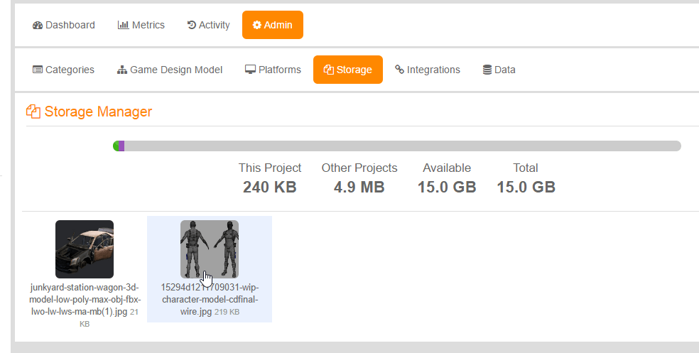 With this storage manager, you are able to see how much attachment space has been used for the current project, for other projects and the available space. At the same time, it displays all the files in the project along with their size, allowing you to delete them in case you are close to the limit, without having to iterate through all the tasks to delete the attachments.