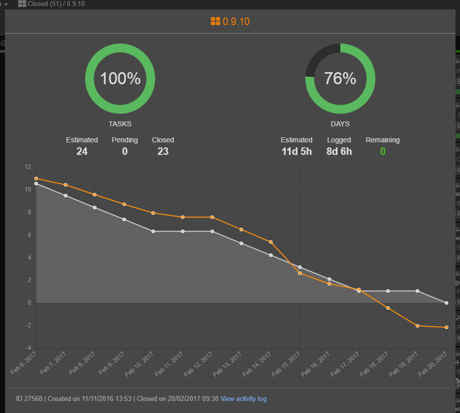 - Milestones couldn’t be closed using the context menu, only drag and drop.
