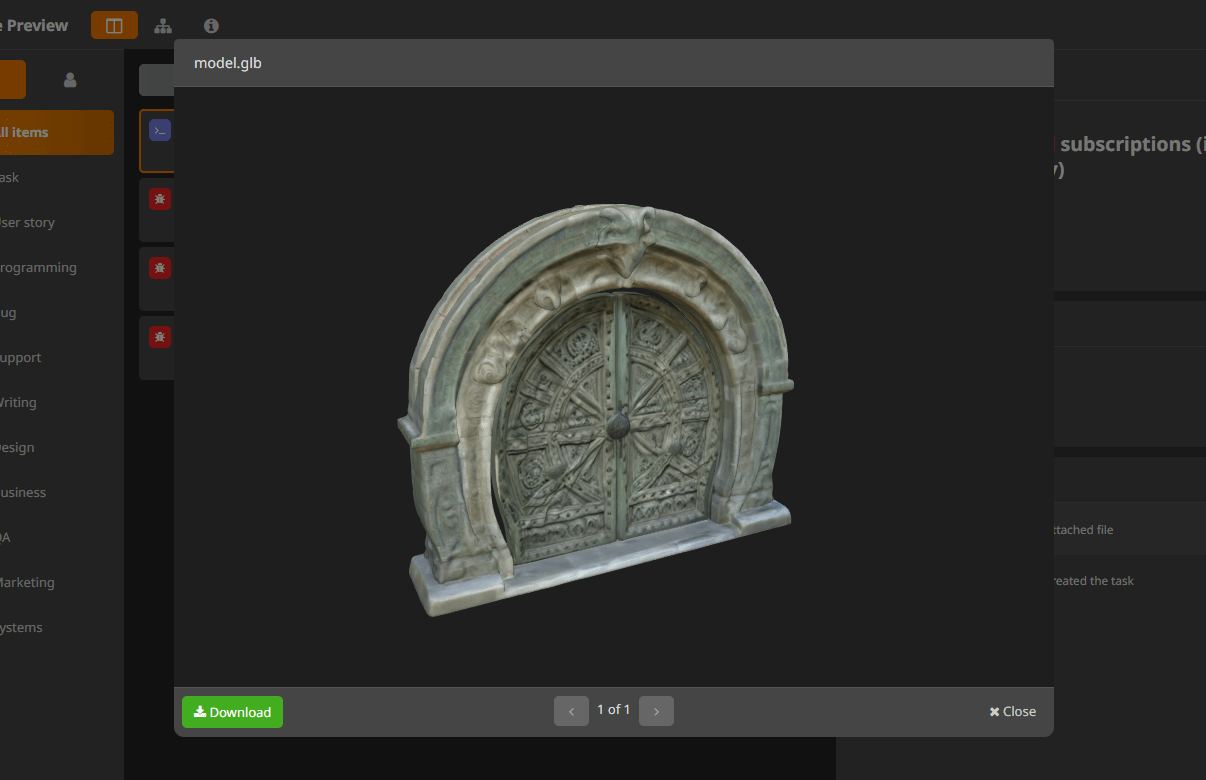 Note: We do not recommend embedding big 3D model attachments in descriptions, as they will be automatically visualized which can affect performance and speed of navigation.