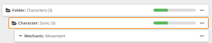 Do you see what’s different? A progress bar has appeared next to the Sonic element, as well as its parent. When you start adding tasks to elements, you can also start to measure the progress of that element. The progress bar is calculated based on the number of tasks, so if you have let’s say 10 tasks assigned to an element and 5 of them are completed, it will show a 50% progress.